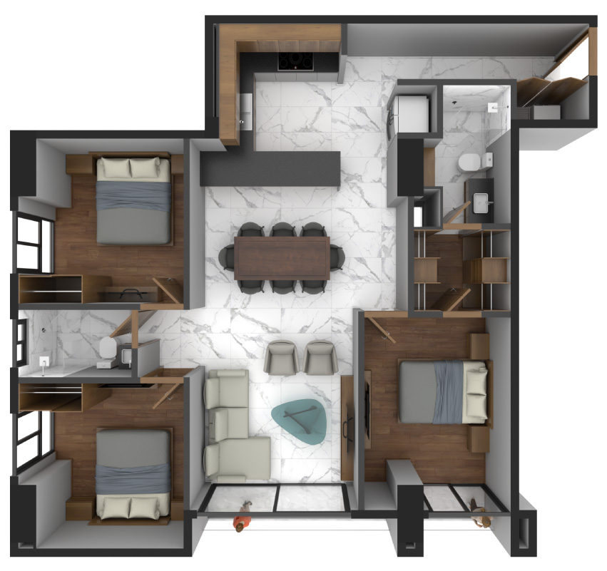 Perfecto para parejas jóvenes y profesionales que buscan un espacio moderno y eficiente.